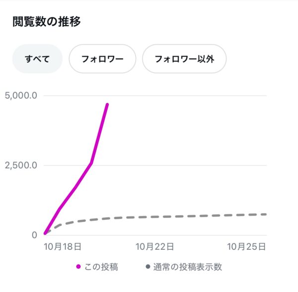 前回のInstagram投稿が5000インプレッションを獲得しました。