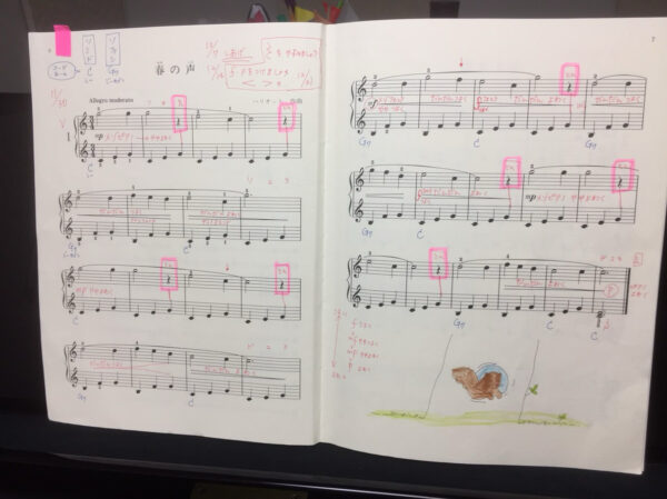 楽譜にも赤で書き込みをしている通り、