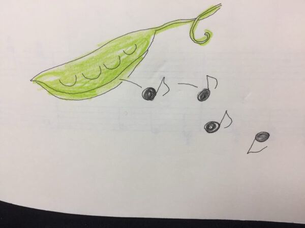 さやえんどうから音符がころころ転がるかわいいイラスト
