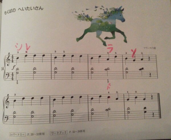 「ここはどんな場面かな?」とイメージを膨らませながら弾くMちゃんの感性には、いつも驚かされます。お家での練習でも、ぜひ「兵隊さんの行進だね!」と声をかけてあげてください。