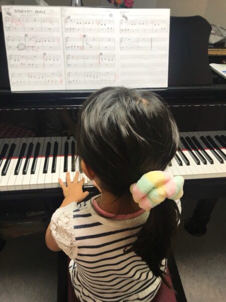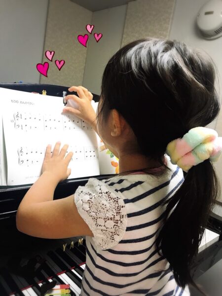 数ヶ月前までは、先生が楽譜をめくるのを待っていたMちゃん。今では『次はここだね!』と自分で準備をする頼もしい姿が見られます。音楽を通して、自立心もぐんぐん育っています。