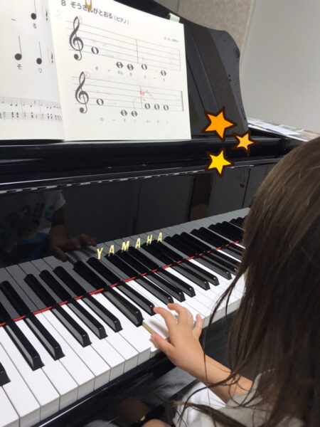 年中さんはまだ指の力が弱い時期ですが、当教室では『魔法の言葉(例:お山を作ろうね、など)』を使って、無理なく綺麗なフォームを身につけられるよう工夫しています。Yちゃんも、意識するだけで音がパッと明るく変わりました!
